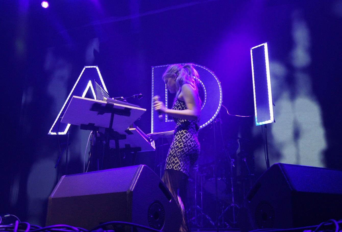 DSC04572The evening’s first act has been Tel Aviv’s electronic popstar ADI ULMANSKY. All by herself on stage, she convinced with thoroughly selected concomitant beats and her great voice. Unfortunately the audience hasn’t been attentive enough for her taste and she left the stage quite displeased in the end…